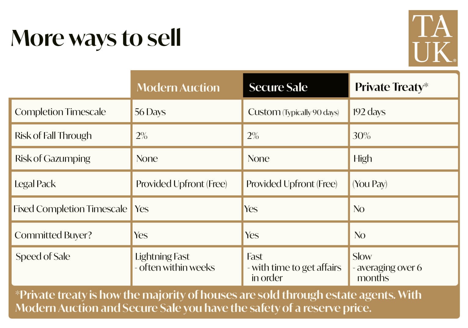 ✓ TAUK Secure Sale or Modern Auction for those who need to sell quickly.